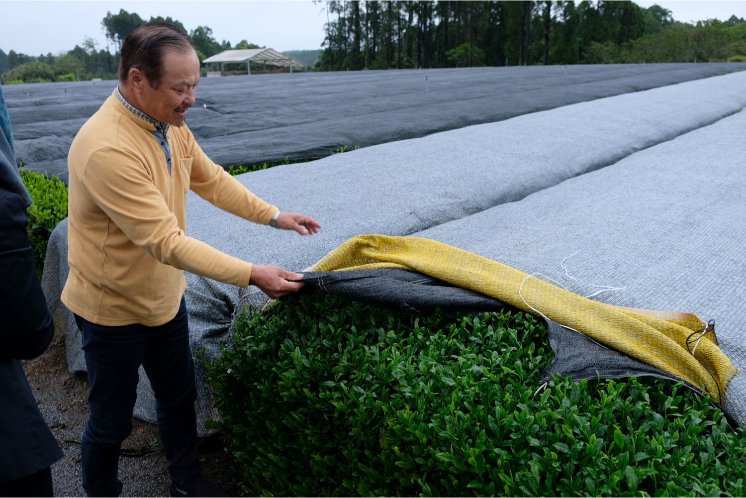 When we visited the legendary karigane and gyokuro farmer Mr. Sakamoto, he demonstrated to us how soft the soil on the tea fields was by driving a large bamboo pole into the ground, with very little resistance. He says that this is because there are no pesticides used on the tea fields, so the earthworms and small insects are able to move around the soil and loosen it up. This not only leads to a more balanced ecosystem, but also more flavorful tea as the roots are able to penetrate deeper into the ground and absorb more nutrients.