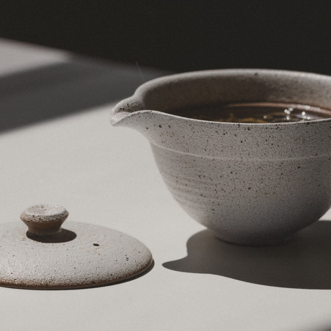 Dado que la tetera se compone solo de una tapa y una base, naturalmente existen algunas similitudes entre el tokoname shiboridashi vs gaiwan. Una de las diferencias clave es que con la gaiwan, es necesario inclinar ligeramente la tapa para crear un espacio que permita que el agua fluya, pero que las hojas queden atrás. Con el tokoname shiboridashi, el espacio ya está integrado en la parte delantera del pico, lo que permite un vertido uniforme.