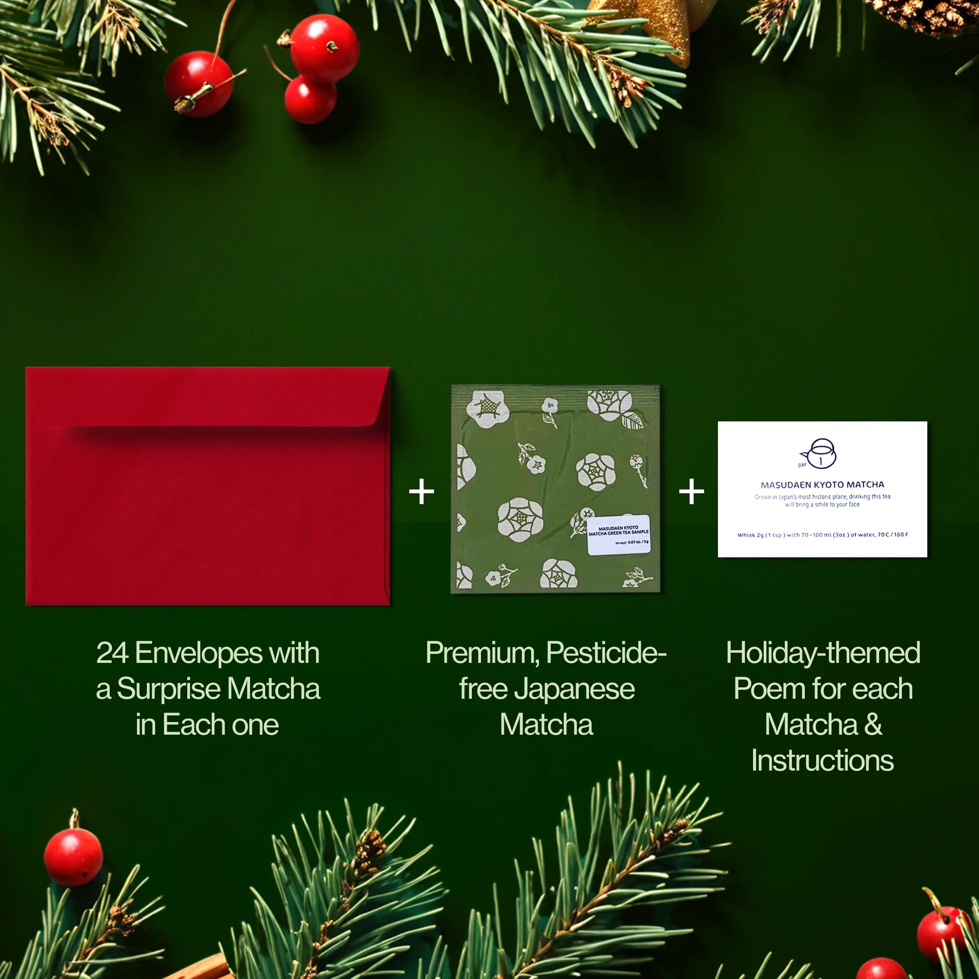 Nuestro calendario ofrece matcha de grado ceremonial premium y libre de pesticidas, procedente de pequeñas granjas familiares de todo Japón, lo que garantiza un sabor auténtico y una calidad inigualable.