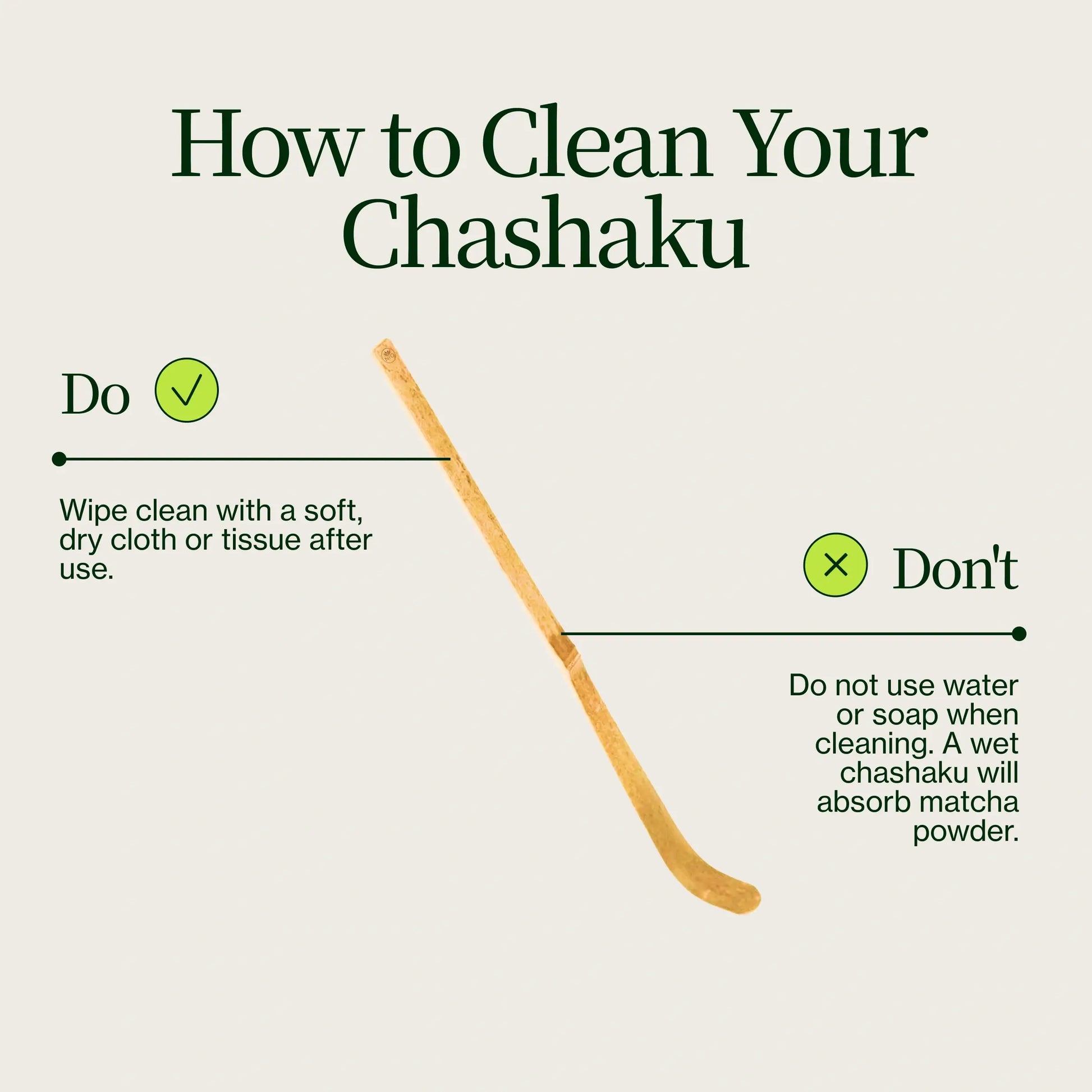To preserve your chashaku’s shape and natural finish, avoid using water or soap.