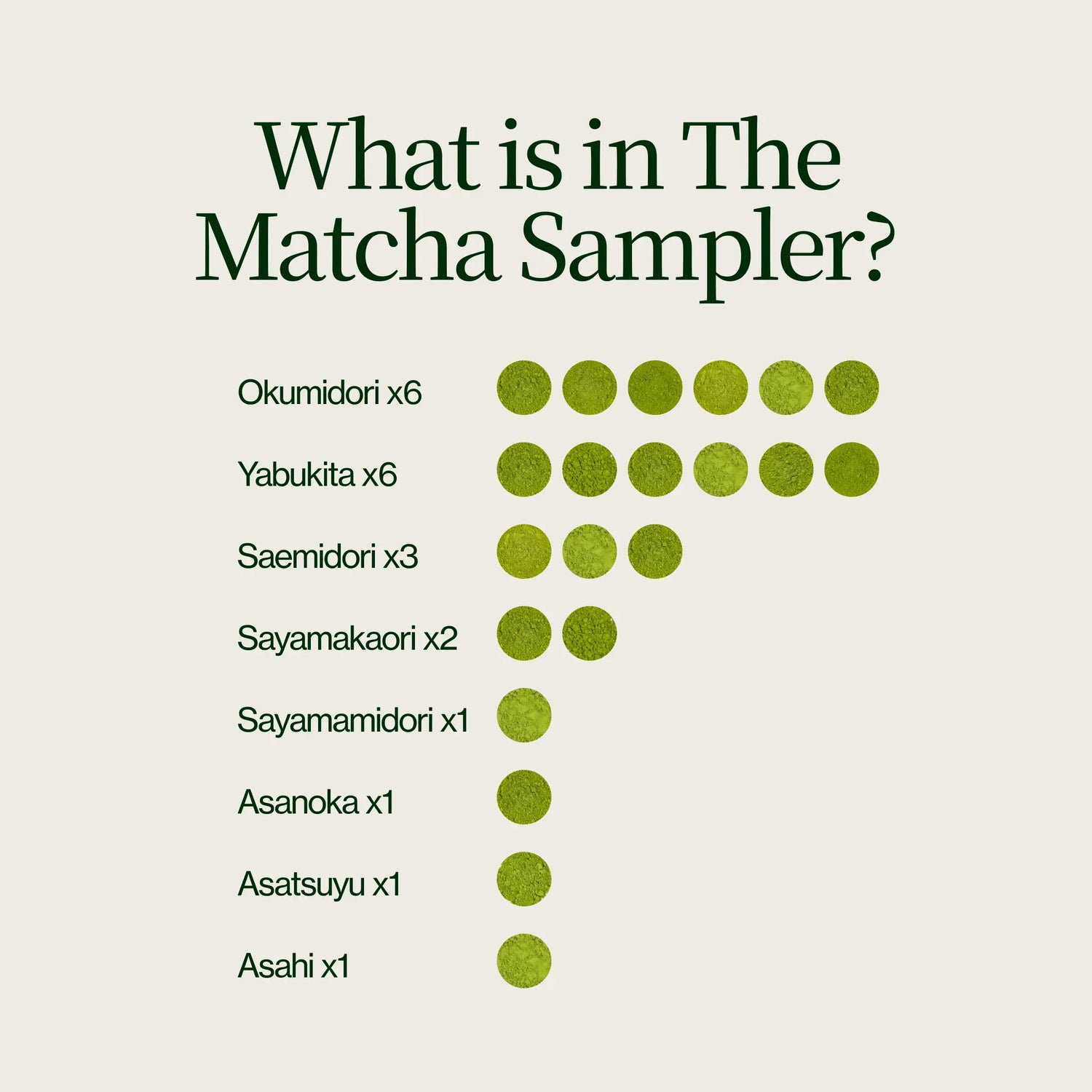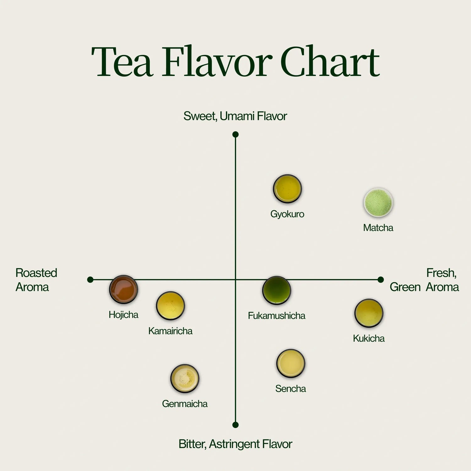 Just like with wine, the flavor of matcha differs based on the growing region and the variety of plant. In this sampler, you'll get to experience a spectrum of flavor profiles and learn to pick a matcha that matches your unique taste.