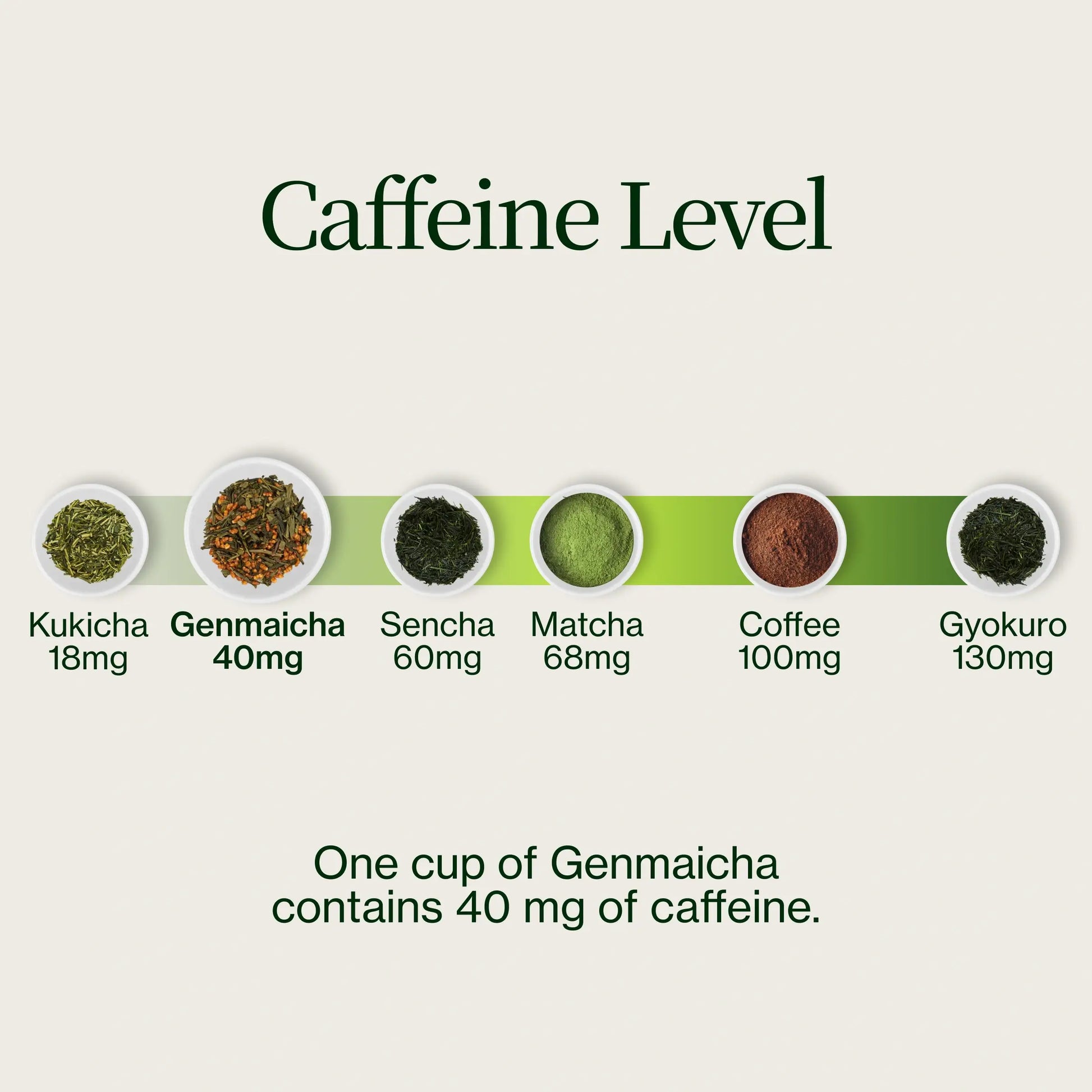 Para preparar Genmaicha Té de palomitas de maíz, recomendamos usar una temperatura ligeramente más alta y un tiempo de infusión más corto. En cuanto al té de palomitas de maíz, recomendamos usar una temperatura ligeramente más alta y un tiempo de infusión más corto. Genmaicha Palomitas de maíz: el sabor se libera rápidamente, pero las temperaturas más altas pueden hacer que se aprecien algunas de las notas más cálidas del té.